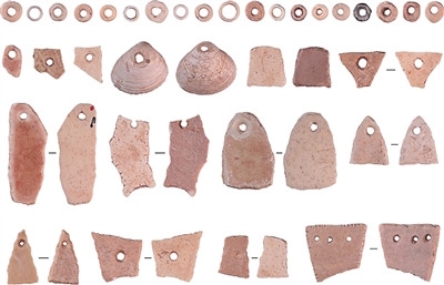 河北阳原县新庙庄旧石器时代遗址出土的穿孔装饰品。