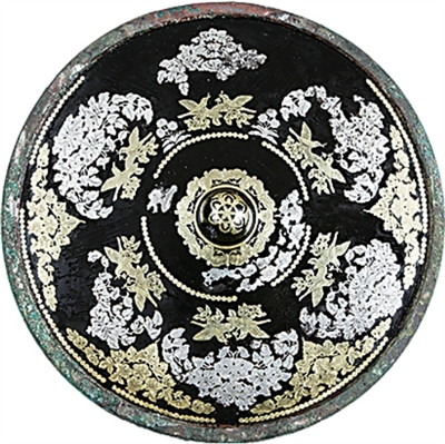 新疆吐鲁番市巴达木东墓群出土的金银平脱花鸟纹铜镜。